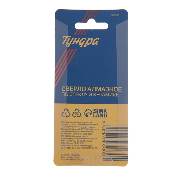 Сверло алмазное по стеклу и керамике с трехгранным хвостовиком ТУНДРА предназначено для совместного использования с дрелью.