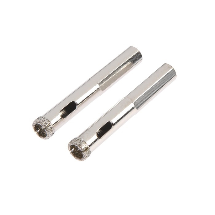 Сверло алмазное по стеклу и керамике ТУНДРА, трехгранный хвостовик, 10 х 65 мм, 2 шт.