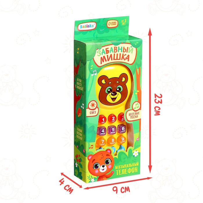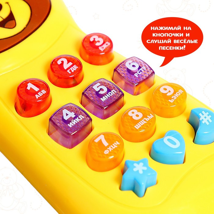Телефончик музыкальный «Забавный мишка», световые эффекты, русская озвучка, работает от батареек