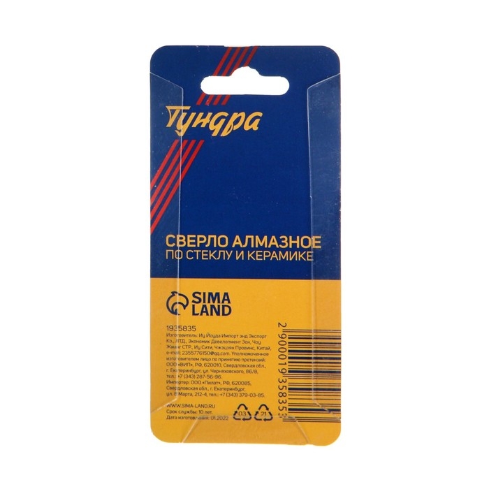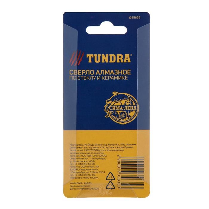 Сверло алмазное по стеклу и керамике с трехгранным хвостовиком ТУНДРА предназначено для совместного использования с дрелью.