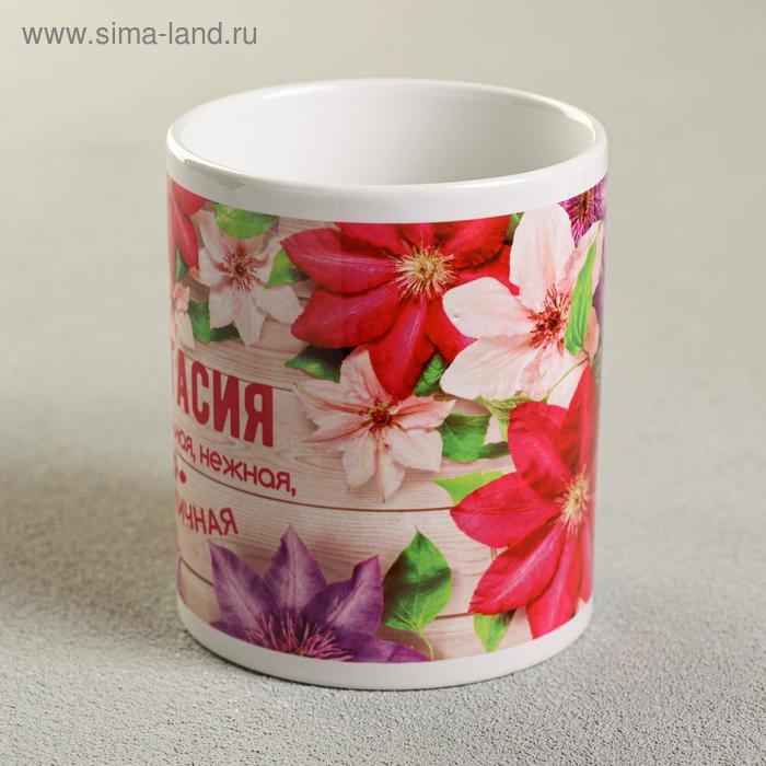 Кружка сублимация "Анастасия" цветы, 320 мл, с нанесением