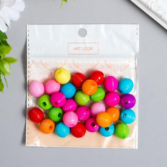 Бусины для творчества пластик "Ребристая" набор 30 шт 1,2х1,2 см