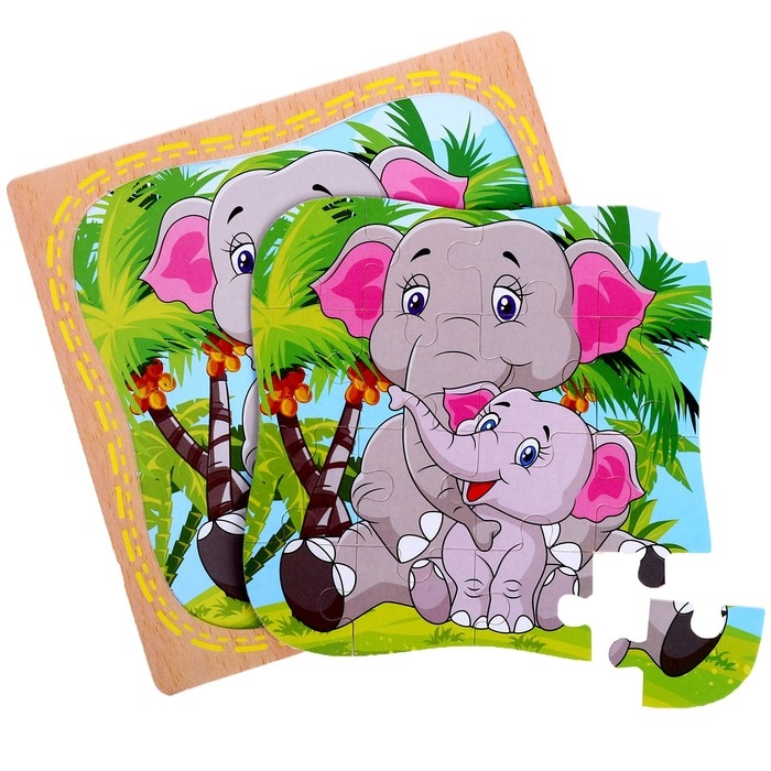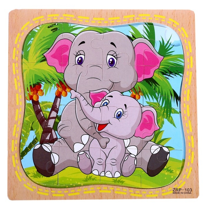 Пазл в рамке "Слонёнок и мама"