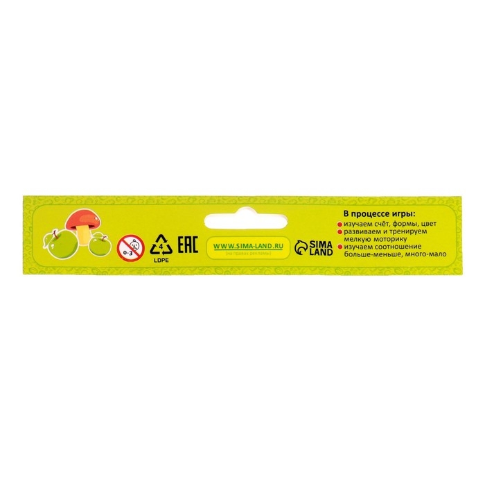 - Фигурки сделаны в виде объёмных ярких грибочков, которые удобно брать в руки даже самым маленьким детям.