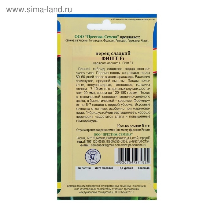 Семена Перец сладкий "Фишт" F1, 5 шт