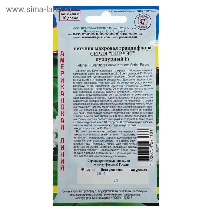 Семена цветов Петуния махровая грандифлора "Пирует" Пурпурный F1, О, драже 5 шт