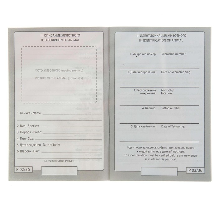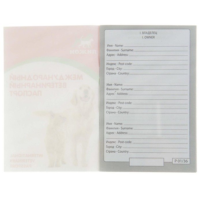 Ветеринарный паспорт международный универсальный "Пижон", 36 страниц