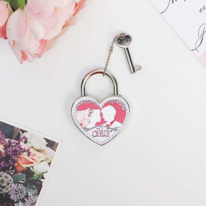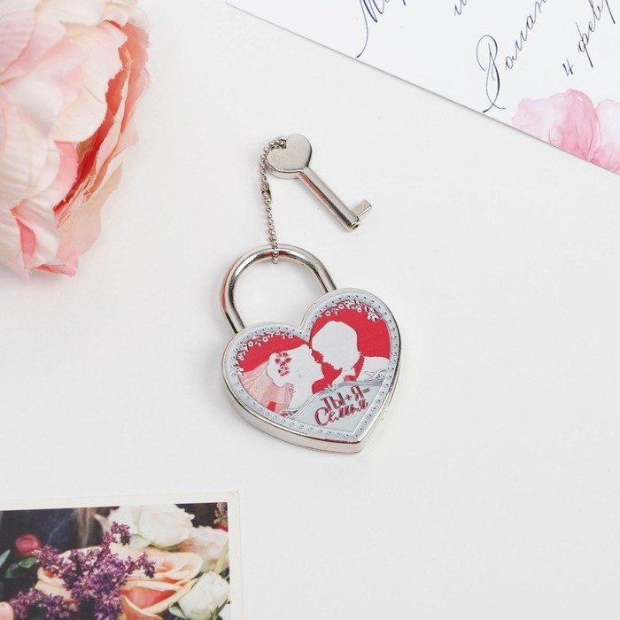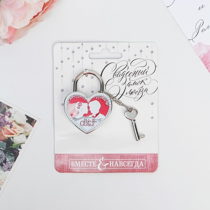 Замок свадебный с ключом «Ты + Я = СЕМЬЯ».