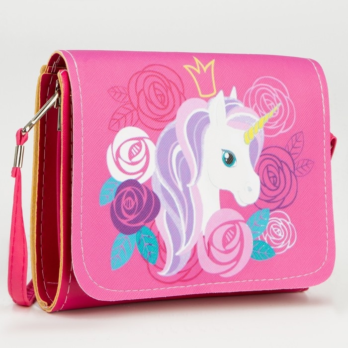 Сумка детская для девочки "Единорог в цветах", на клапане, цвет розовый, 15х4х12 см