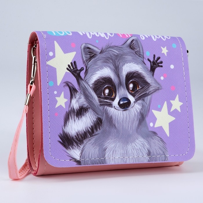 Сумка детская для девочки "Енотик", на клапане, цвет сиреневый