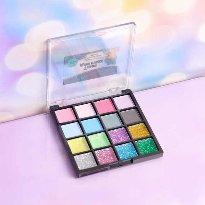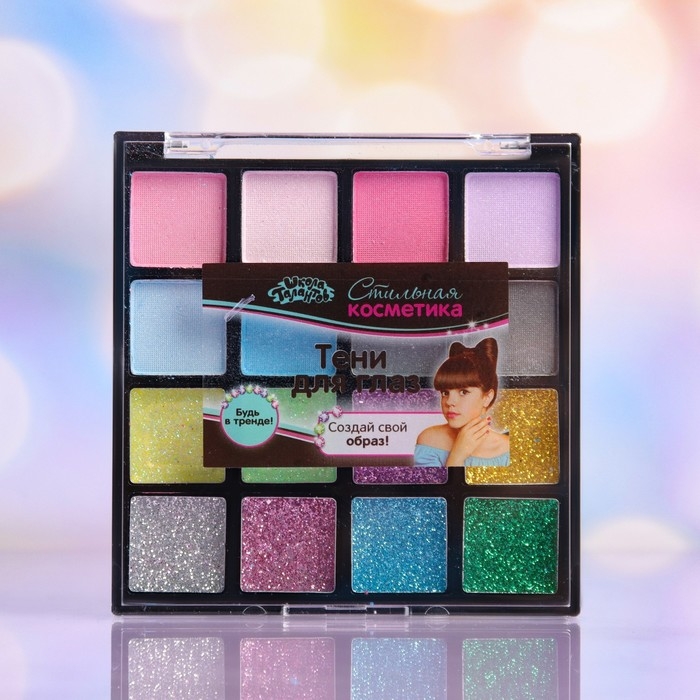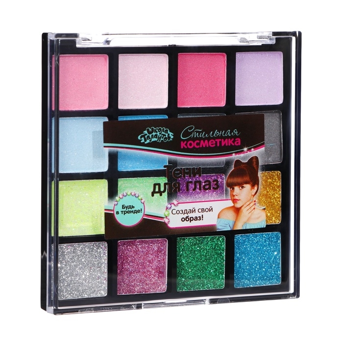 Набор теней детских для век 16 цв, 8 с блёстками, 8 матовые