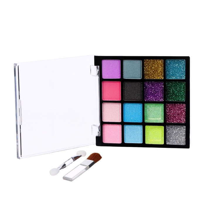 Набор теней детских для век 16 цв, 8 с блёстками, 8 матовые