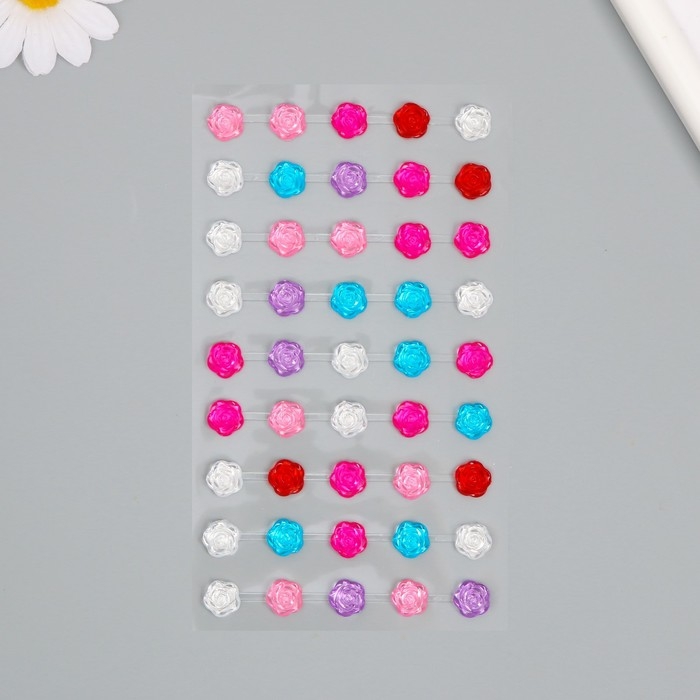 Наклейка стразы пластик "Цветочки" МИКС 30х10 см