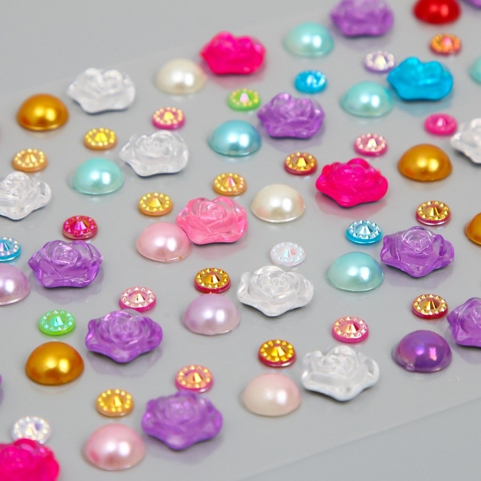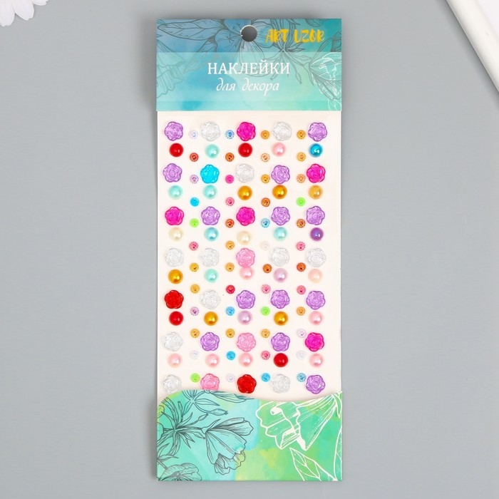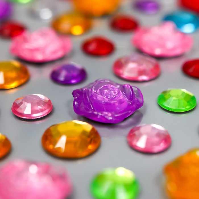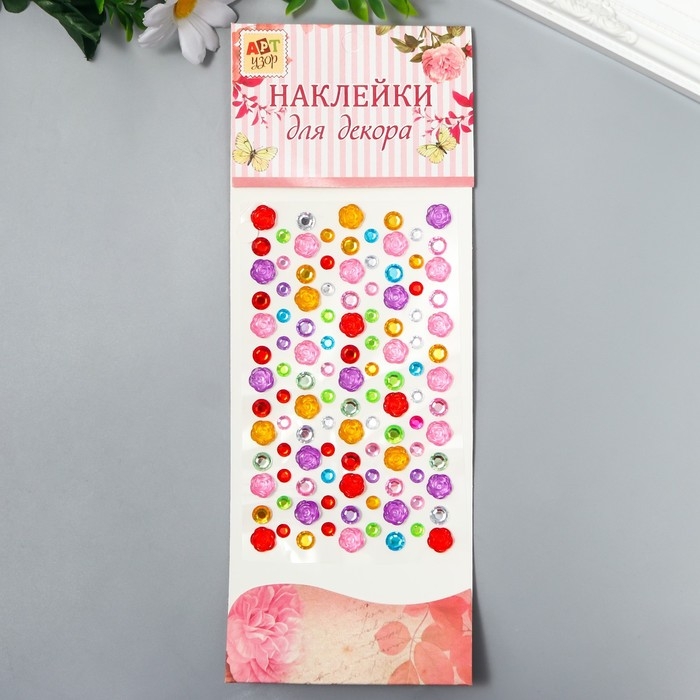 Наклейка стразы пластик "Цветы и горох" цвет МИКС 30х10 см