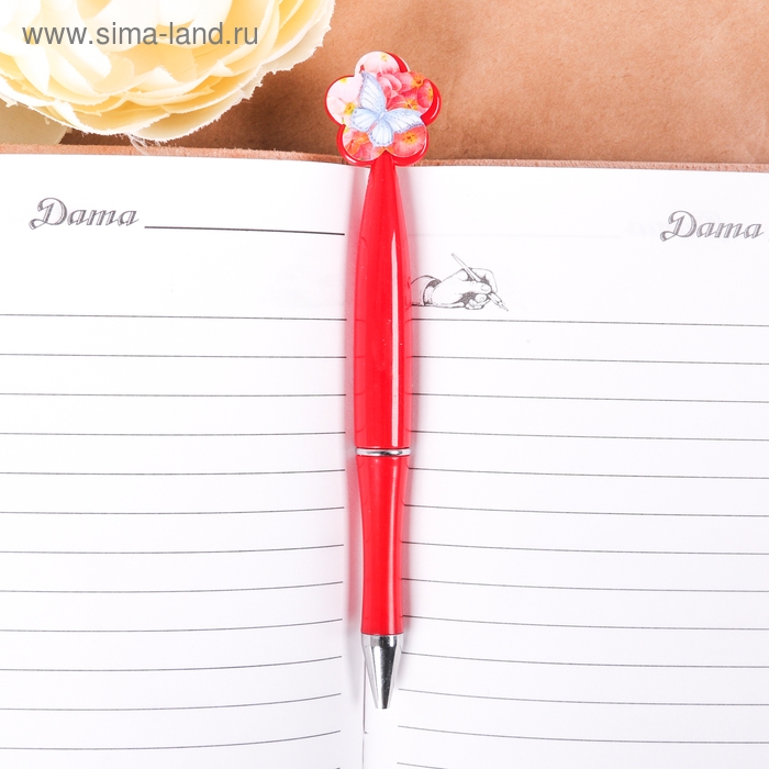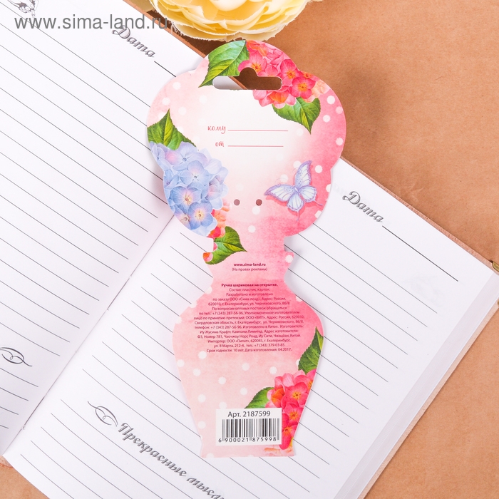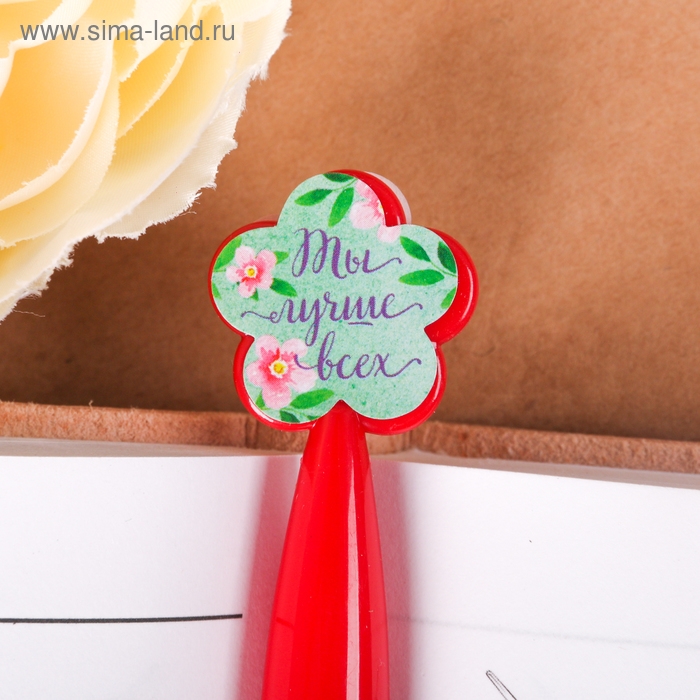 Ручка шариковая синяя паста, пластиковая с цветком "С праздником весны!"