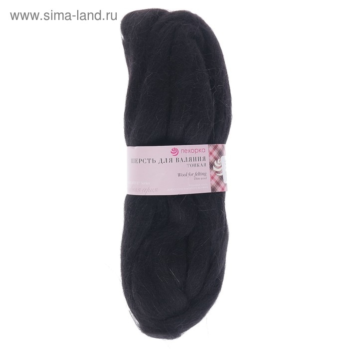 Шерсть для валяния 100% тонкая шерсть 50гр (02-Черный)