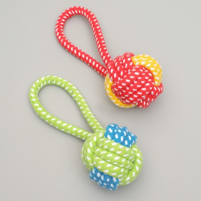 Мячик из каната с ручкой, шарик 5 см, до 30 г, микс цветов