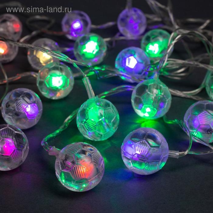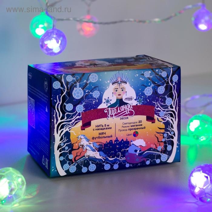 Гирлянда «Нить» 5 м с насадками «Футбольный мяч», IP20, прозрачная нить, 20 LED, свечение мульти (RG/RB), мигание, 220 В