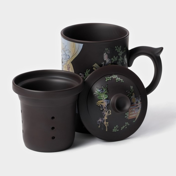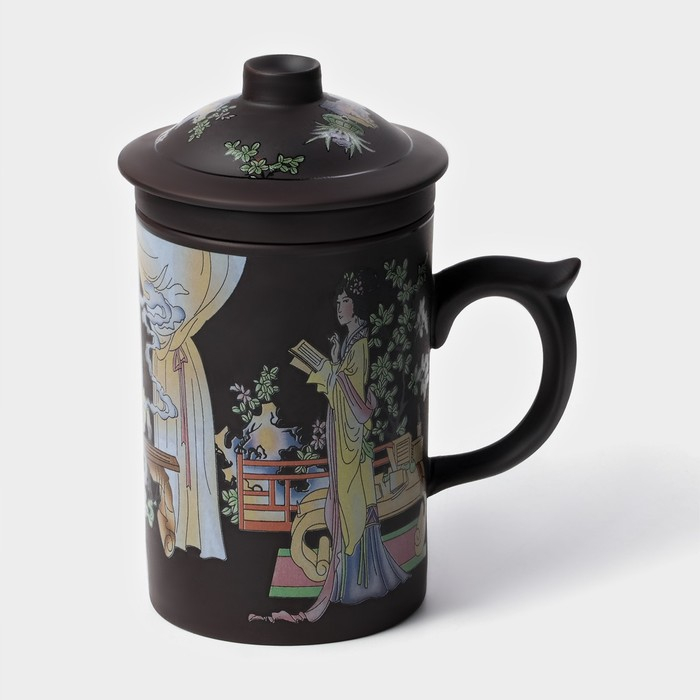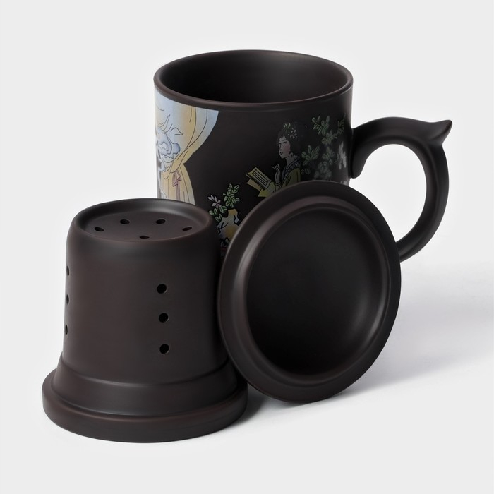 Кружка керамическая с крышкой и ситом «Девушка с книгой», 350 мл
