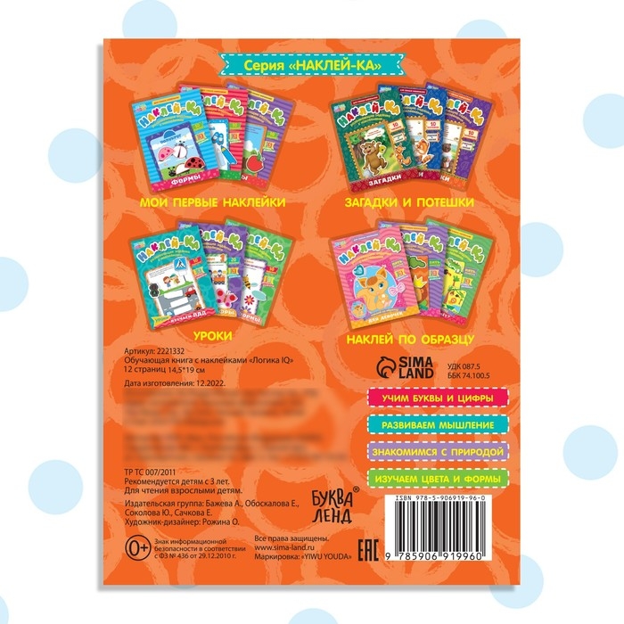 Наклейки обучающие «Логика IQ», 12 стр.