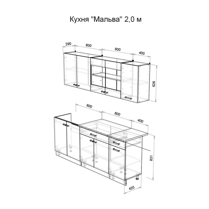 Кухонный гарнитур Мальва 2000, Венге/Лоредо