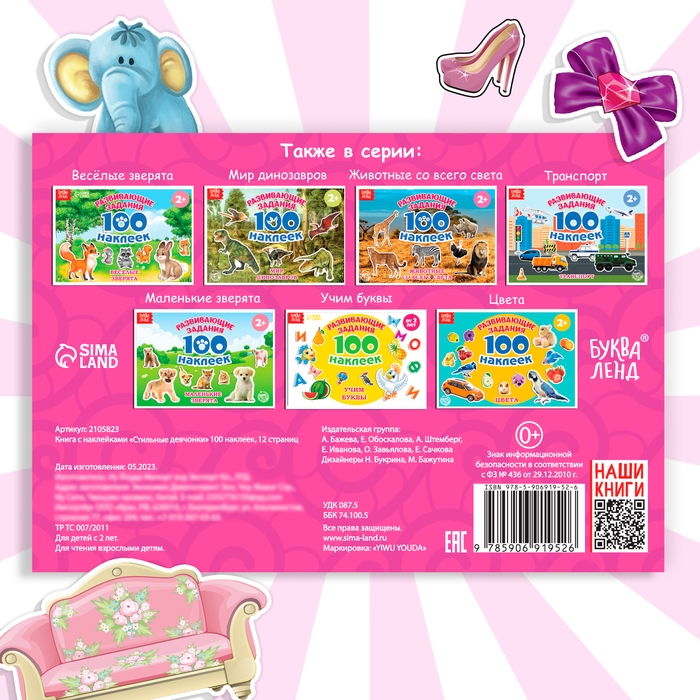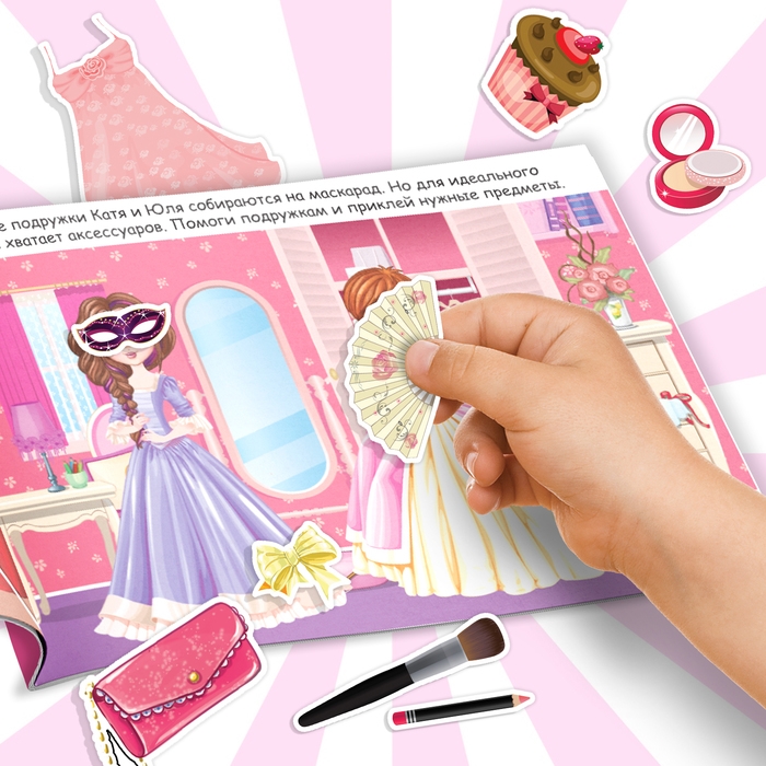 В альбоме представлено 100 наклеек с красочными изображениями одежды, косметики и предметов интерьера. Яркие картинки положительно влияют на визуальное восприятие ребёнка, память и воображение.