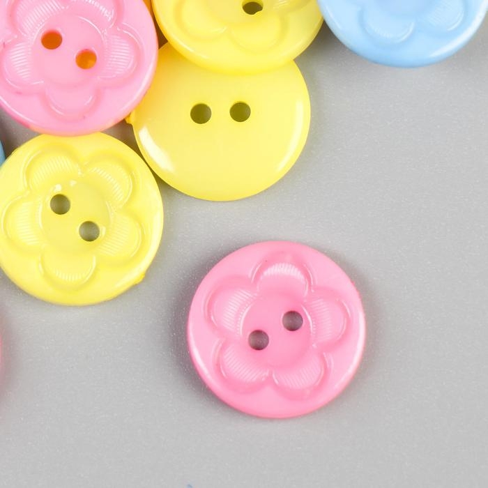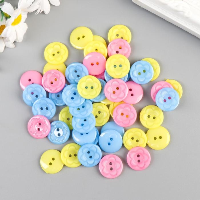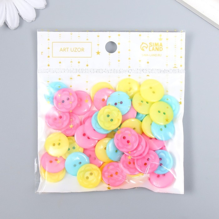 Набор пуговиц декоративных пластик "Цветочек в круге" набор 50 шт 1,8х1,8 см МИКС
