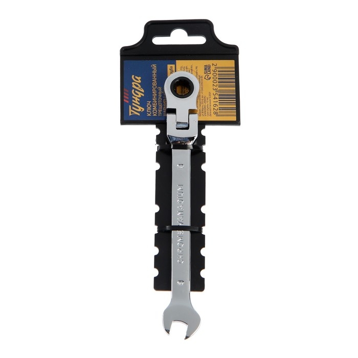 Ключ комбинированный трещоточный шарнирный ТУНДРА, CrV, полированный, 72 зуба, 8 мм