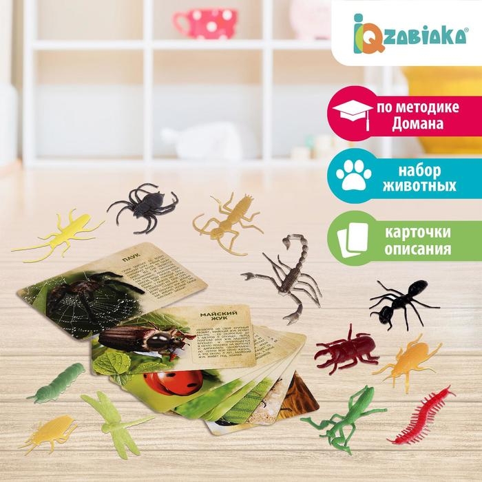 Набор животных с обучающими карточками «В мире насекомых», животные пластик, карточки, по методике Монтессори