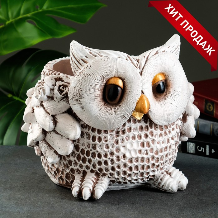 Фигурное кашпо "Сова", 2,8 л/30х31х26 см коричневое