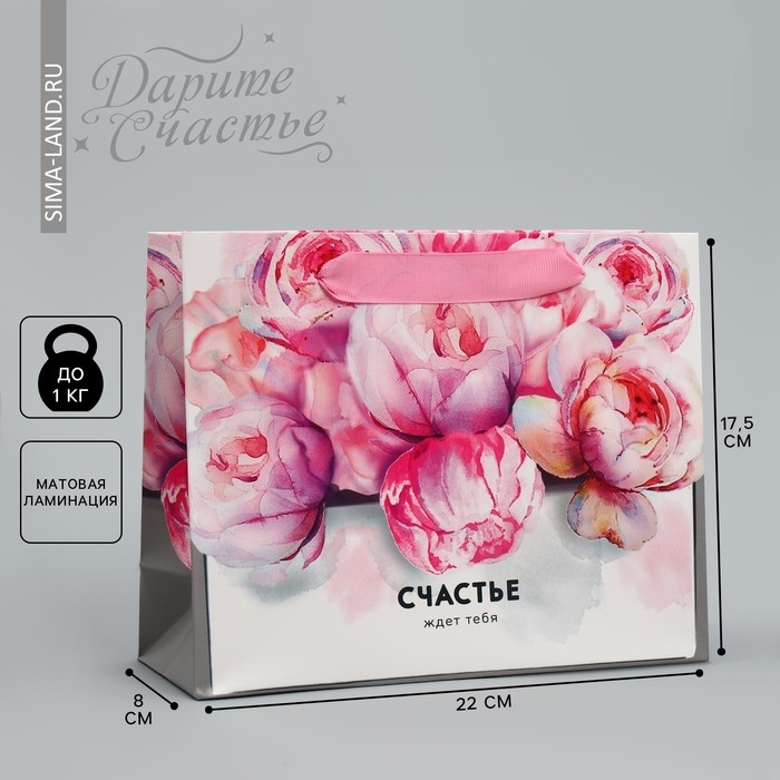 Пакет подарочный ламинированный горизонтальный, упаковка, «Счастье ждёт тебя» 22 х 17,5 х 8 см