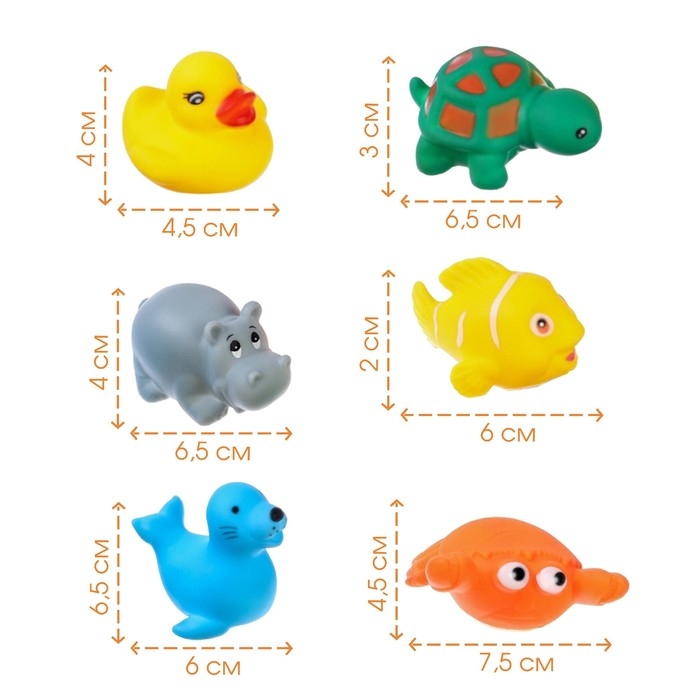 Набор резиновых игрушек для ванны «Морские животные», с пищалкой, 6 шт, виды МИКС, Крошка Я