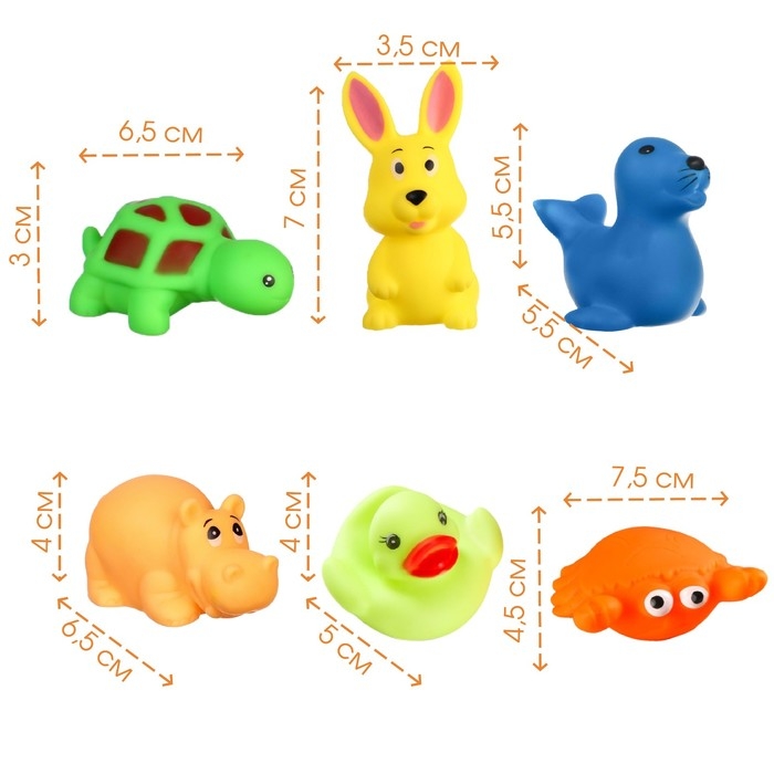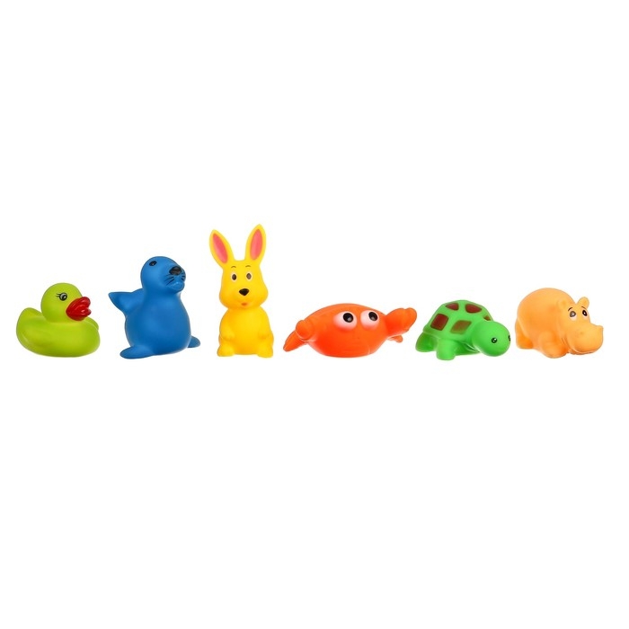 Набор резиновых игрушек для ванны «Морские животные», 6 шт, с пищалкой, Крошка Я