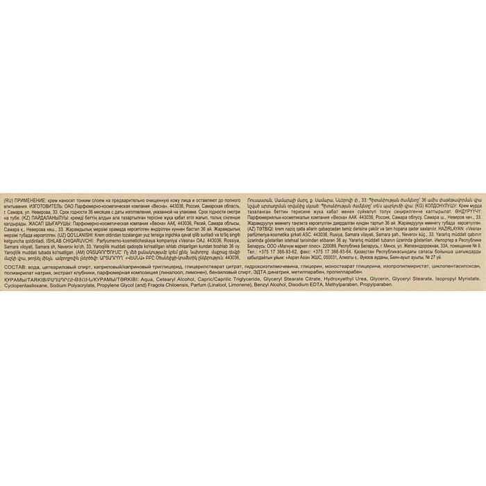 Крем для лица увлажняющий разработан для глубокого увлажнения и тонизирования эпидермиса, идеально подходит в качестве ежедневного антивозрастного ухода для всех типов кожи. Крем для лица увлажняющий можно использовать как с утра, так и вечером. Крем белого цвета, имеет яркий клубничный аромат. Благодаря легкой текстуре крем легко впитывается не оставляет пленки, жирного блеска и эффекта маски на лице, не вызывает раздражений и аллергии, подходит для чувствительной кожи.