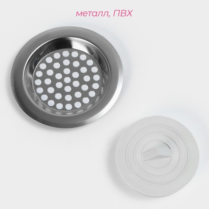 Набор фильтров для раковины с пробкой, 2 шт: (пробка d=5,2 см), (фильтр d=7,4 см)