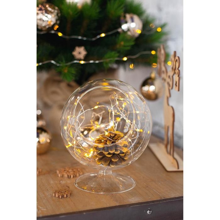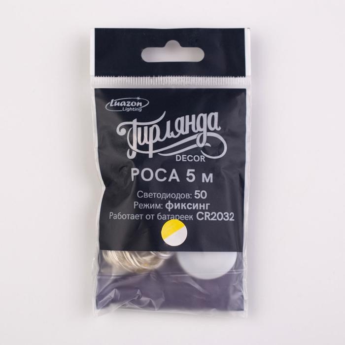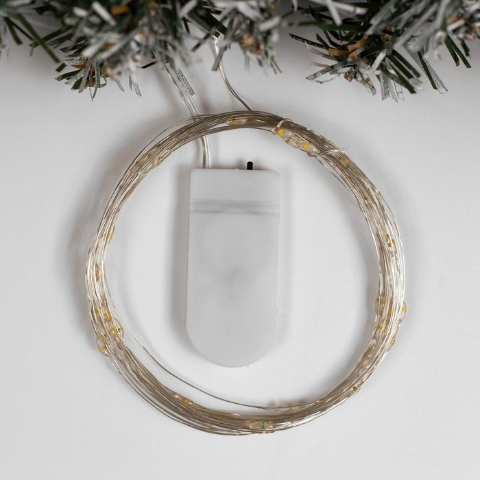 Гирлянда «Нить» 5 м роса, IP20, серебристая нить, 50 LED, батарейки CR2032х2 (в комплекте), свечение тёплое белое