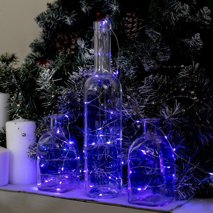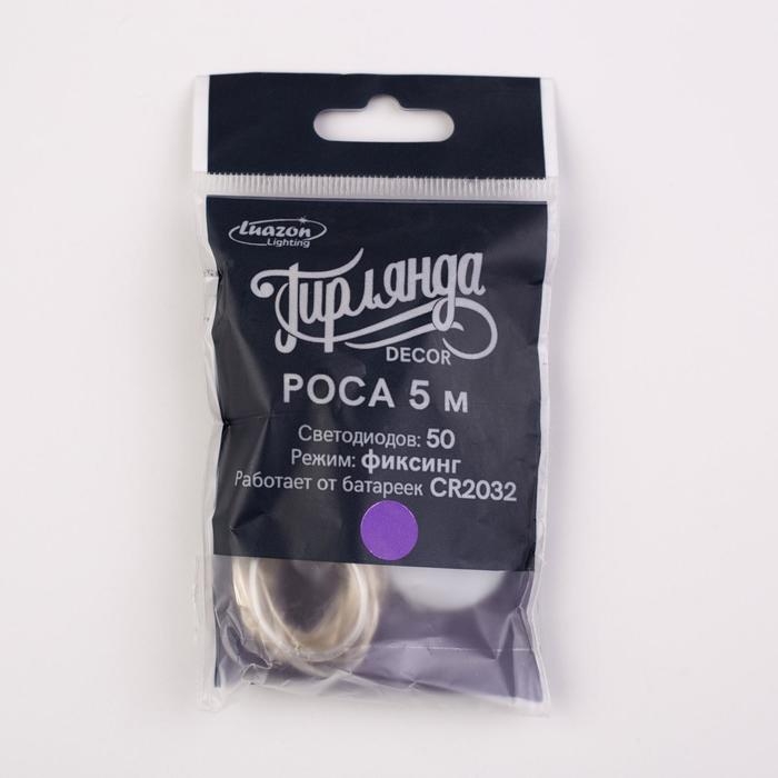 Гирлянда «Нить» 5 м роса, IP20, серебристая нить, 50 LED, батарейки CR2032х2 (в комплекте), свечение фиолетовое