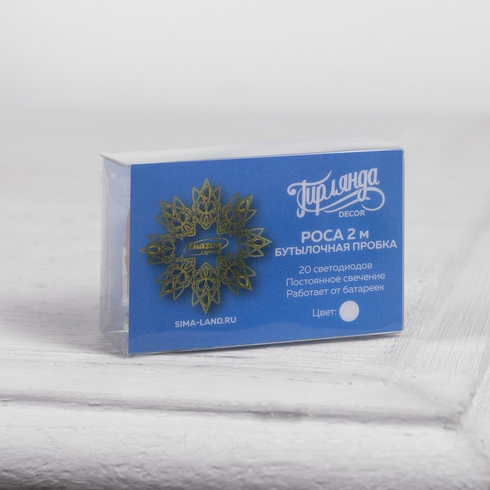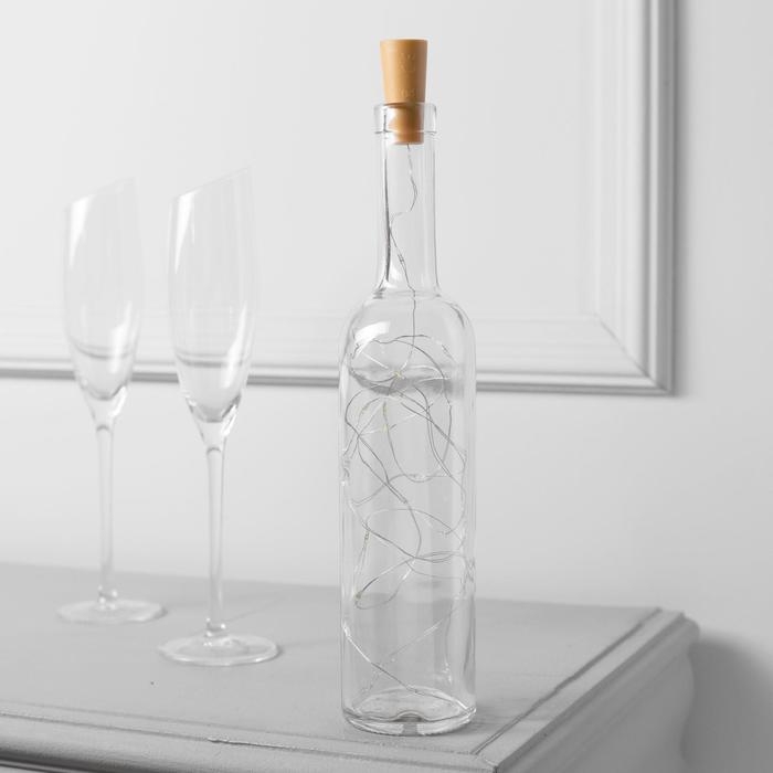 Гирлянда «Нить» 2 м роса с пробкой, IP20, серебристая нить, 20 LED, батарейки LR44х3 (в комплекте), свечение белое