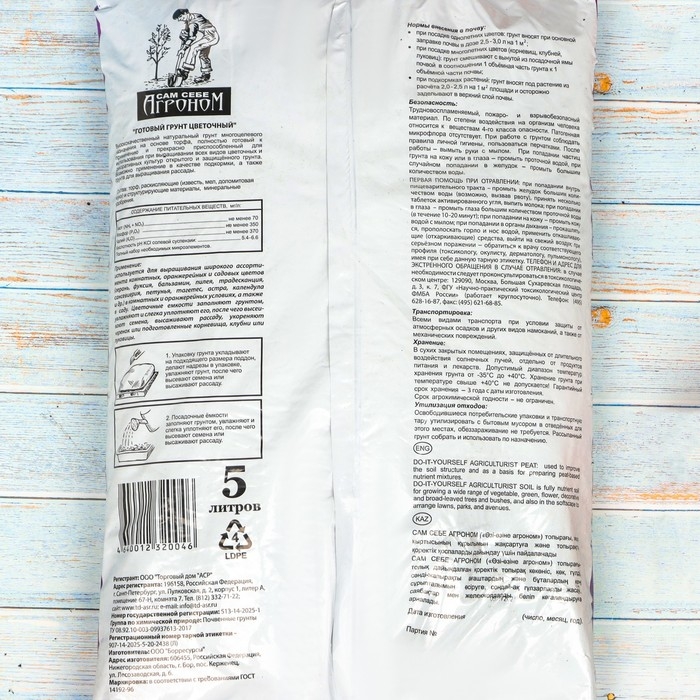 Грунт "Сам себе Агроном", цветочный, 5 л.