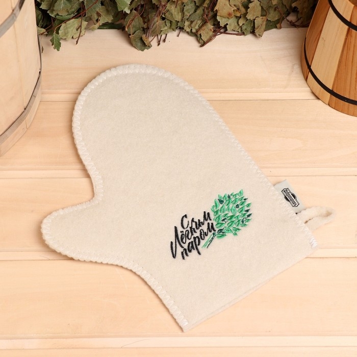 Рукавица для бани с вышивкой "С легким паром" первый сорт