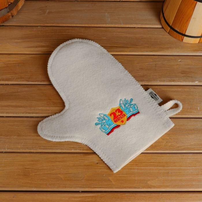 Рукавица для бани с вышивкой "23 февраля", первый сорт