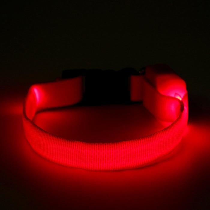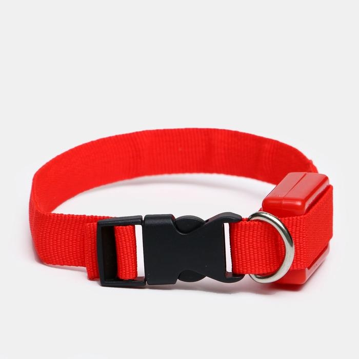 Ошейник с подсветкой размер XL, ОШ 52-60 х 2,5 см, 3 режима свечения красный