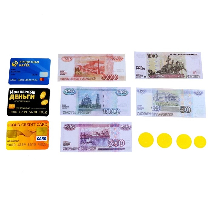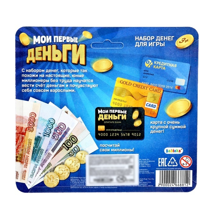Набор предназначен для настоящих юных миллионеров! Ваш малыш научится правильно считать деньги, пользоваться пластиковой картой и почувствует себя совсем взрослым.