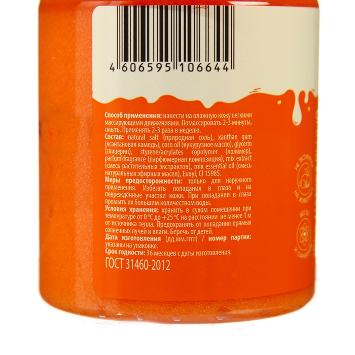 ей невероятную нежность и мягкость. Деликатные отшелушивающие частички выравнивают поверхность кожи, активизируя кровоснабжение подкожных тканей, способствуют обновлению клеток эпидермиса. Витамин С и салициловая кислота очищают кожу от мертвых клеток и других загрязнений, тонизирует и питает кожу любого типа. Эфирное апельсиновое масло в составе, является прекрасным средством для ухода за проблемной кожей и традиционно считается одним из самых эффективных масел от целлюлита. Помогает справиться с растяжками и улучшить состояние кожи.