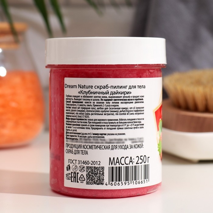 Солевой скраб-пилинг для тела Dream Nature "Клубничный дайкири", 250 мл