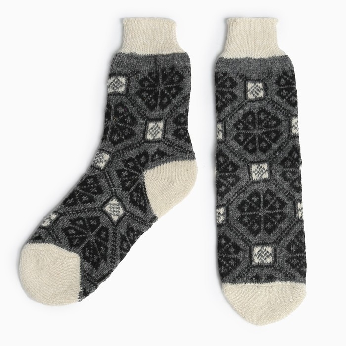 Носки мужские шерстяные «Снежинка в орнаменте», цвет серый, размер 29