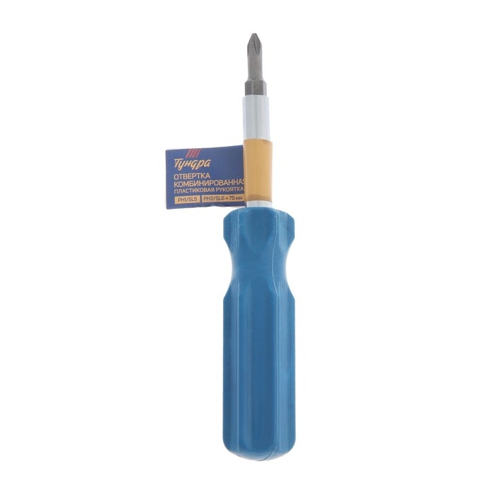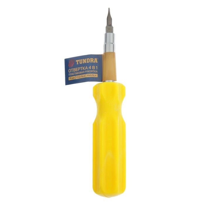 Отвертка комбинированная ТУНДРА, 4 в 1, пластиковая рукоятка, PH1/SL4 PH2/SL5 x 75 мм МИКС
