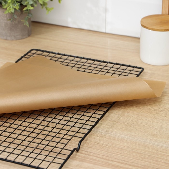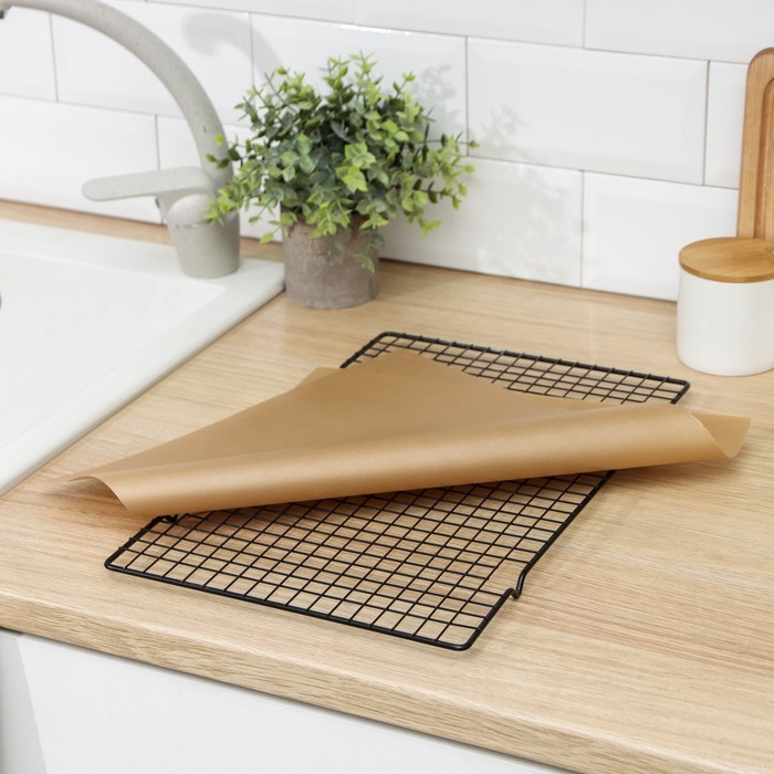 Тефлоновый коврик для выпекания — необходимая вещь в арсенале любой хозяйки, которая хочет, чтобы грязные противни и прилипшие блюда остались в далёком прошлом. Жарьте, выпекайте, запекайте. Быстро, вкусно и без масла! Сушите, замораживайте продукты и даже раскатывайте тесто на этом универсальном коврике.