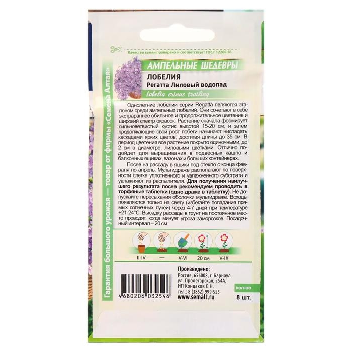 Семена цветов Лобелия Регатта "Лиловый Водопад" ампельная, О, цп, 8 шт.