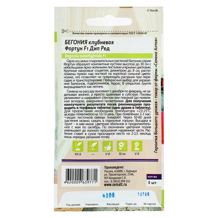Семена комнатных цветов Бегония "Дип Ред", 4 шт
